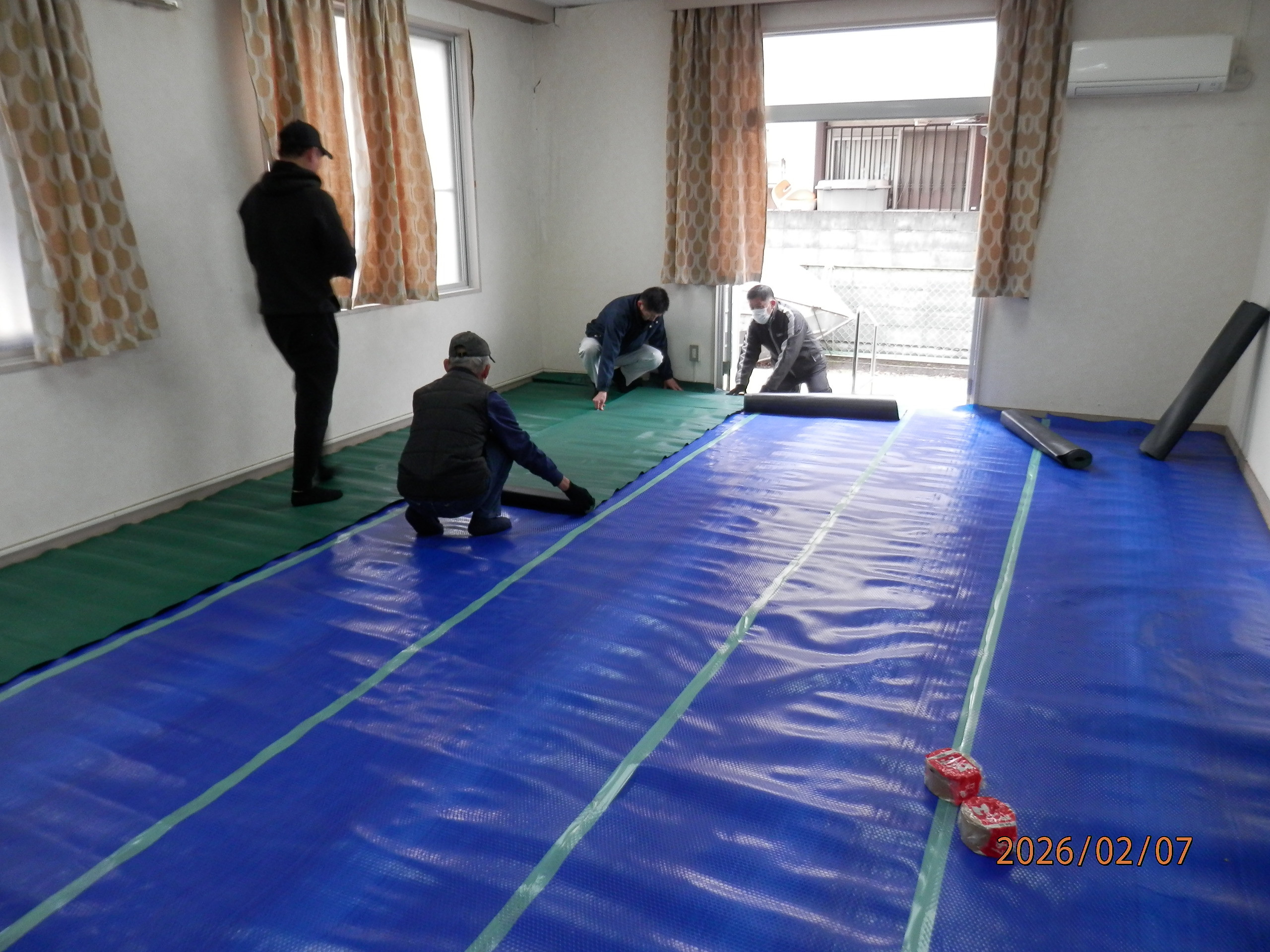 を行う為に、集会所を土足でも入れるように3地区の役員さんで準備をします。